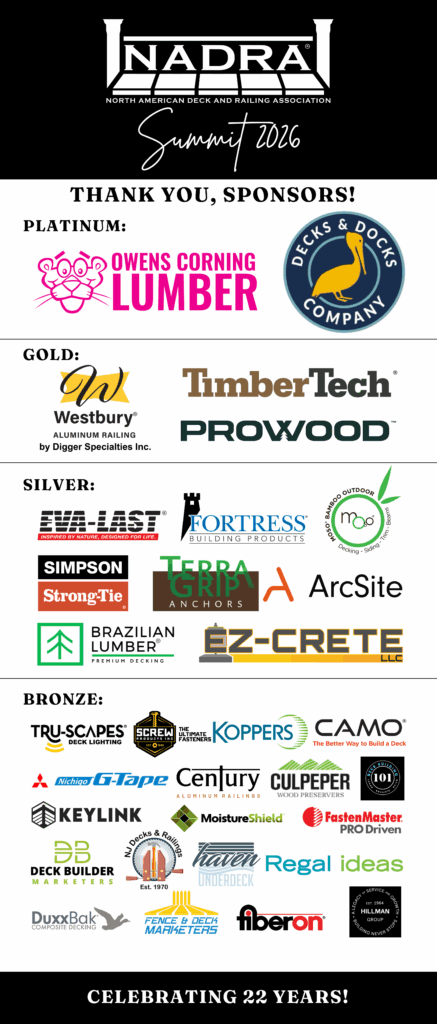 The 2026 NADRA Summit was held January 7-9, 2026 in Clearwater Beach, Florida. Stay tuned for highlights, photos, and Deck Awards winners gallery.