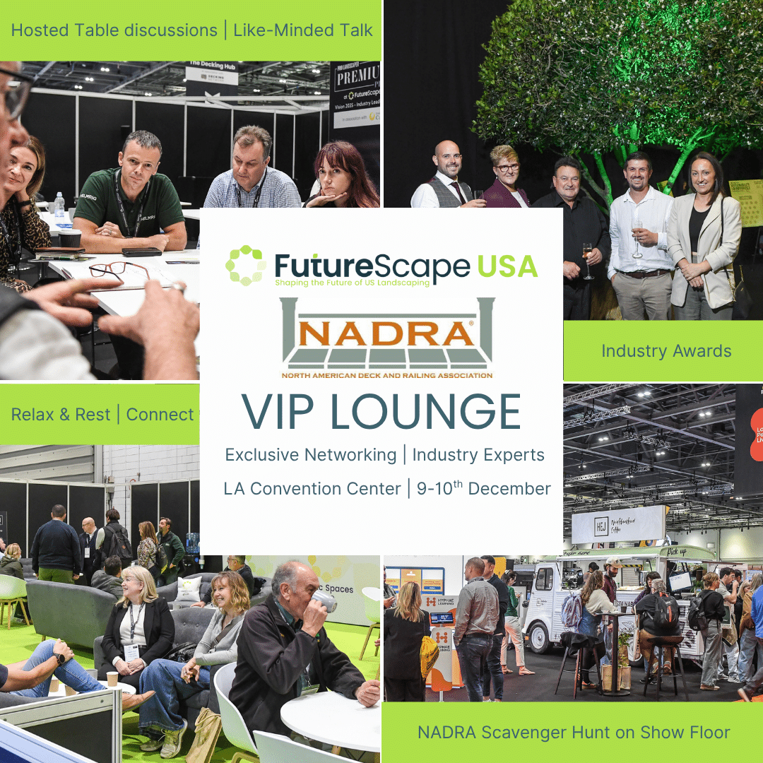 Los Angeles, CA – The North American Deck and Railing Association (NADRA) has been announced as the premier Outdoor Living Sponsor and VIP Lounge Host of FutureScape USA, the premier landscaping and outdoor living event taking place December 9–10, 2025, at the Los Angeles Convention Center.