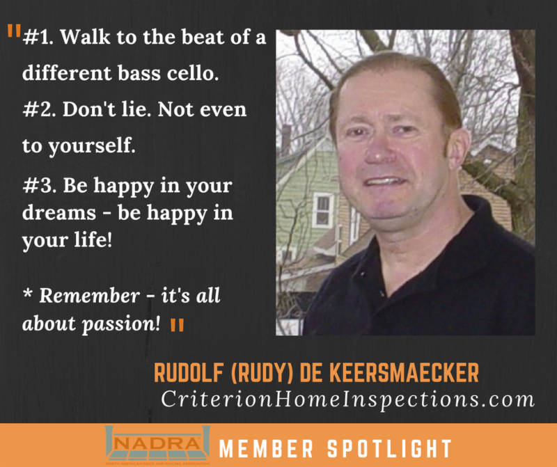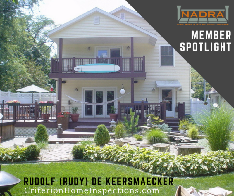 What inspired you to join NADRA? I believe that a deck is an integral part of a home structure, and as such requires a critical examination to protect the clients interests. Joining NADRA and operating under NADRA and ASHI standards allows me to give my client the best possible inspection report. This is why I joined NADRA.