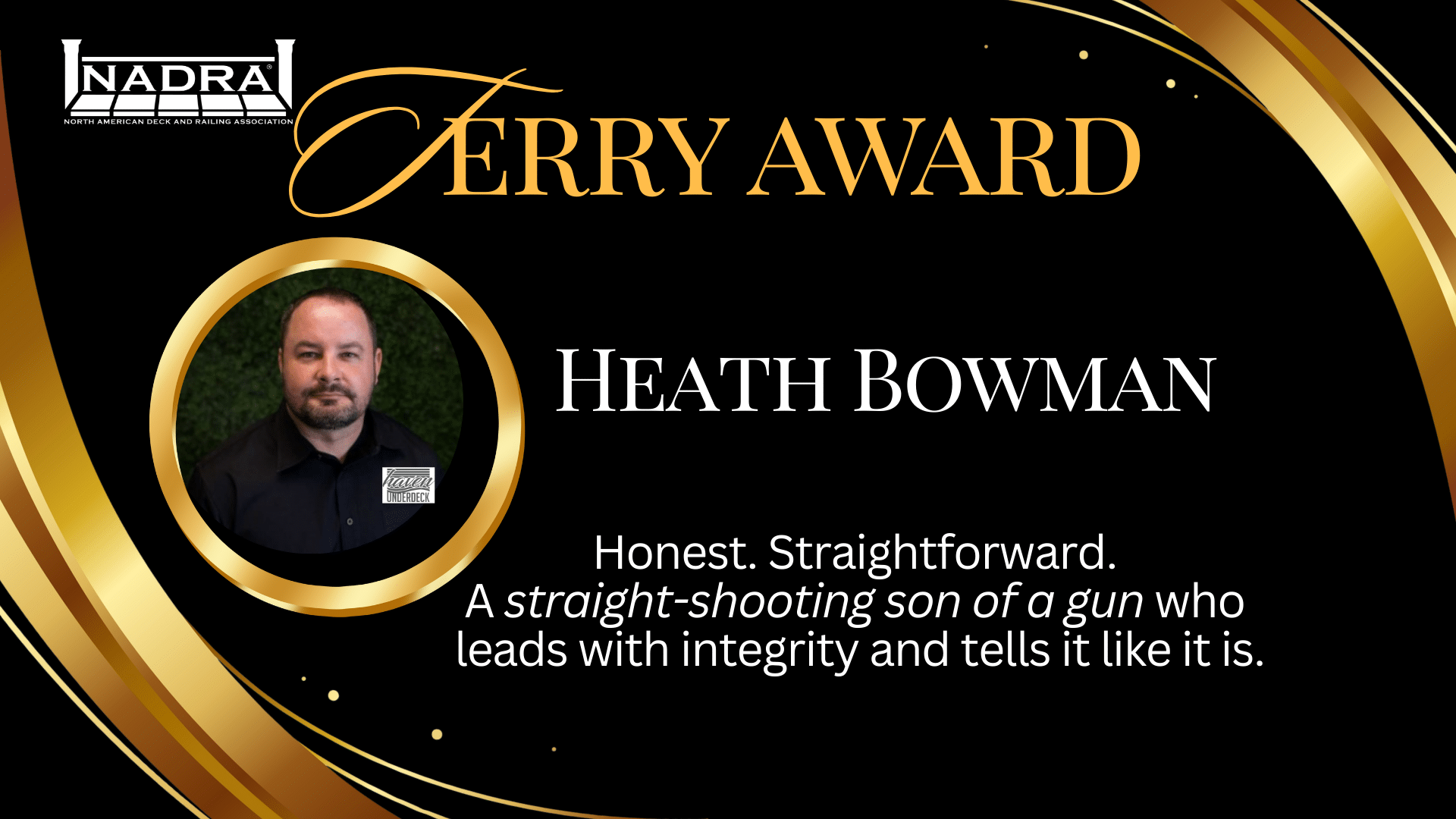 The Prestigious Terry Award was presented to Heath Bowman. The certificate describes him simply and accurately: honest, straightforward, a straight-shooting son of a gun who leads with integrity and tells it like it is. Those words reflect how Heath shows up in this industry. Consistent, direct, and guided by principle. Doing things for the right reason, and having fun doing them.